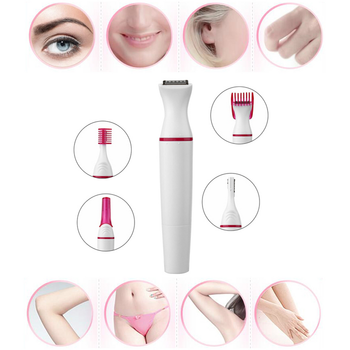 Graças à tecnologia Doplien, desenvolvida especialmente para esse aparelho o Depilador Feminino 5 em 1 depila diversas partes do seu corpo com a mesma eficiência. Sobrancelha, axila, pernas, virilha e buço, e possui uma lâmina especial para cada região. Bastam poucos minutos para obter os resultados que você normalmente só seguiria depois de uma longa e dolorida sessão de depilação.